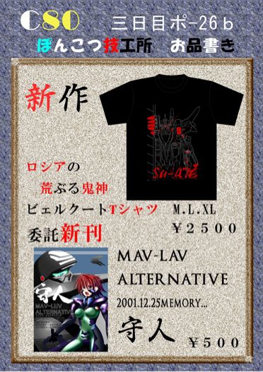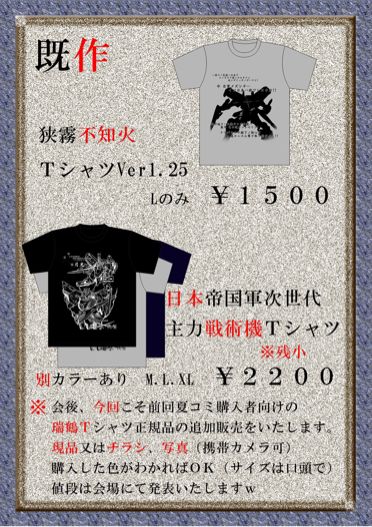 もうひとつの日本帝国軍次世代戦術機Tシャツはコミ1の時に再販した分のみですのであまり数がないので買いたい方はお早めに・・・